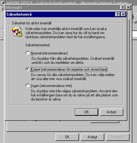 "aktivt innehåll" skall kunna hämtas och köras på Din dator.